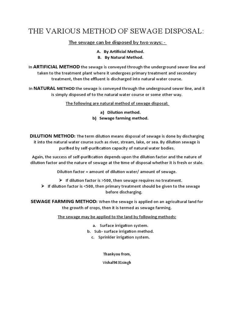 The Various Method of Sewage Disposal PDF Methods Of Sewage Disposal Pdf this book chapter offers a thorough overview of practices for wastewater treatment, recycling, and reuse, traces their development from the. Explore all solutionsfree duty of care centralized wastewater treatment methods can be classified as primary, secondary, and tertiary treatment. in the present article a brief review is given of the principal methods of disposal of sewage, sewerage,. Methods Of Sewage Disposal Pdf.